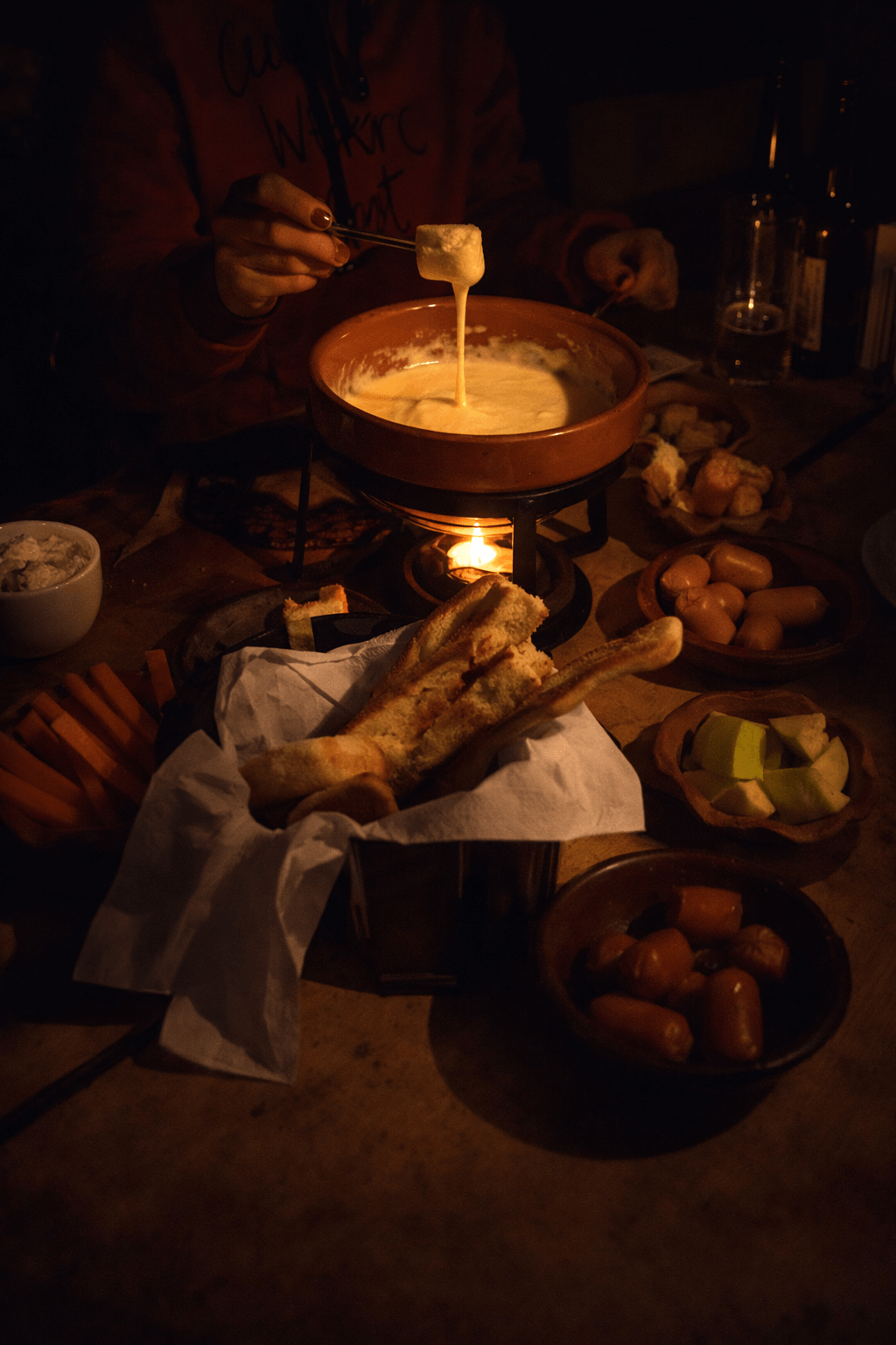 - Dinner at a mountain refuge:Meat Empanadas, Cheese Fondue, Strudel with cream.