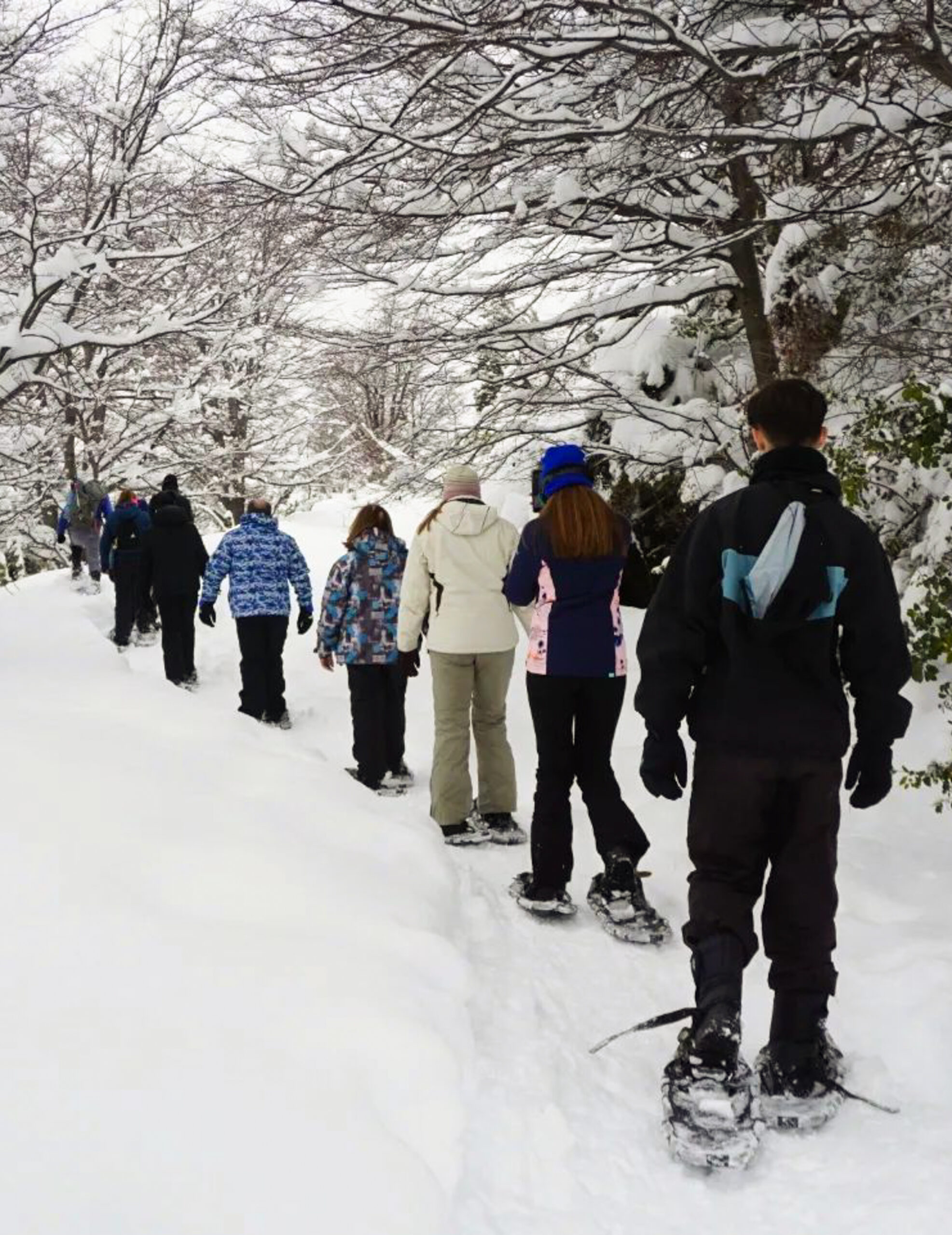 Activity suitable for everyone: Easy snowshoe hike on snowy trails, ideal for all ages.
