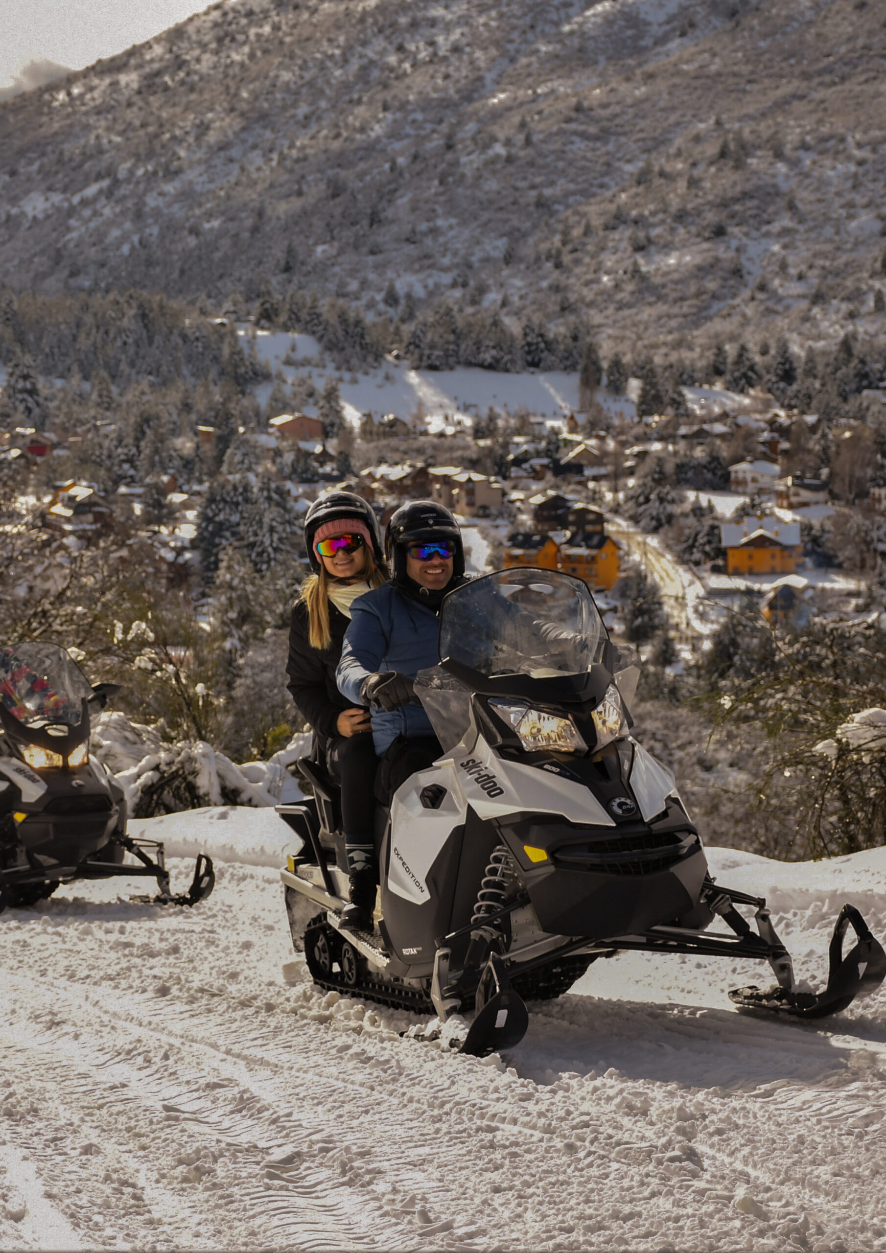 The tour starts at 2:30 p.m., with transfer included from agreed points between downtown and km 8 of Bariloche. From there we take you directly to the Cerro Catedral, where the real adventure begins: 7 km of pure adrenaline on snowmobiles or ATVs, riding on snow-covered trails through Andean forests, guided by experts.